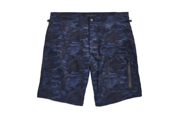 Whether you’re casually walking down the boardwalk or about to take a dip in the water, Mack Weldon’s new Board Shorts have you covered. Thanks to the shorts custom quick dry fabric, you won’t have to worry about walking around dripping with water. Other key details include bonded pockets, a velcro closure fly and adjustable draw cord. Grab the shorts in four different colors including this sweet blue night camo print. Click here to find your size.
