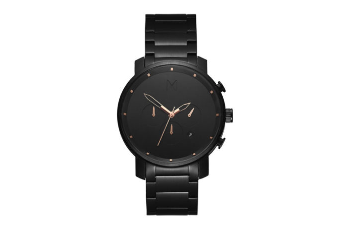 New to their Chrono Series, MVMT debuts their latest watch in Black Rose. The watch features a brushed black stainless steel case with a matching strap. You’ll also find black on the dial, in addition to rose gold hands and markers. Finishing off the watch are three subdials; a 24 hour clock, 30 minute timer and 60 second timer. Get this watch by clicking here.