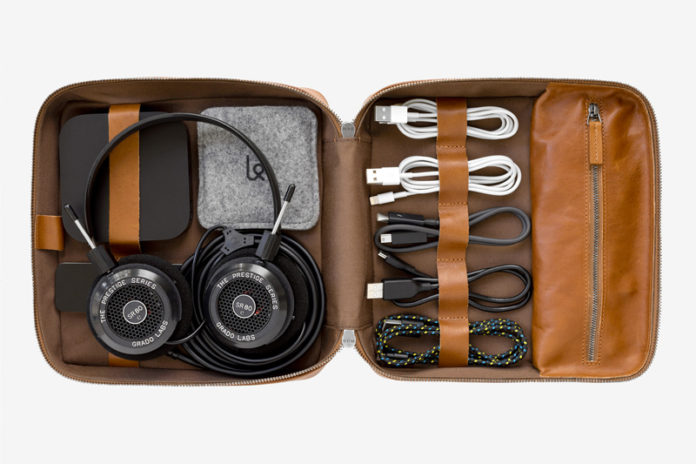 Keep all your tech organized while on the go with This Is Ground’s Tech Dopp Kit 2. This premium leather zip-up organizer features a number of compartments in a bento box style design that fuse with the traditional dopp kit. Whatever your travel needs are, you will find a spot for all your essential tech accessories with convenient access to all your gadgets and cords. You’ll find space to strap down your cods, adapters, headphones or other on-the-go necessities on both sides of the dopp kit with an additional zipper pocket for your smaller items. Get yours in a variety of sizes and colors by clicking here.