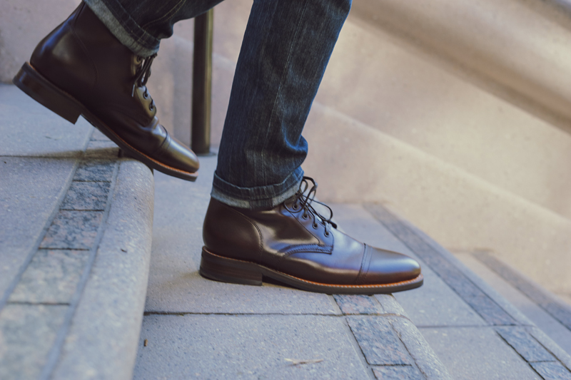 It doesn’t take long to realize that the Captain isn’t just your average boot. It’s much more than just that with a sense of sophistication and style. The cap-toe is a nice touch with a refined look that can easily be dressed down or up. We’ve chosen the Captain in Brown and Natural to provide contrast between the two color options. Both colors are especially fitting for this silhouette and come to life on the Thursday Chrome Leather upper in Brown and Chromexcel Horween® Leather in Natural. Here’s what Mike and Lauren had to say.