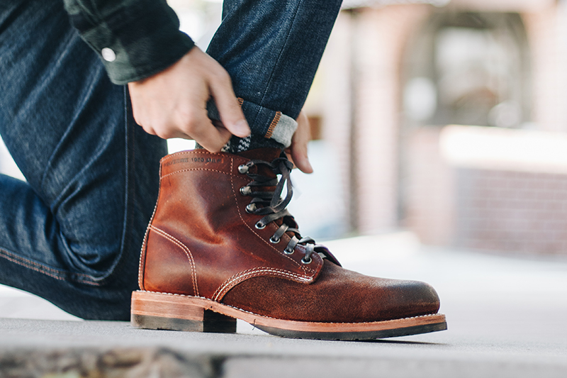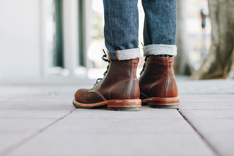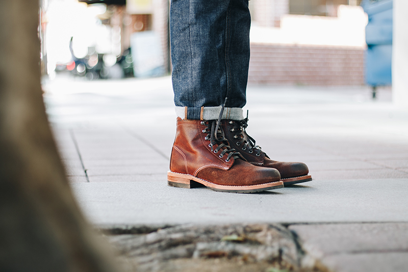 With a rugged upper, the rest of the boot features a leather outsole with Vibram rubber forepart and heel for optimal traction. Goodyear Welt construction will allow us to resole the boots if the time ever comes as we plan to wear these for years to come. Finishing off the boots are flax waxed cotton laces to complete that tough look.