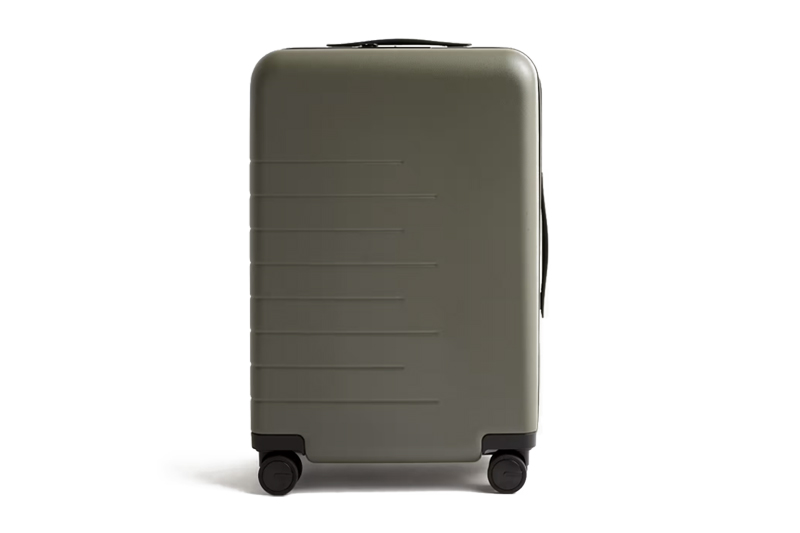 The Quince Carry-On Plus is built for travelers who want to pack light without sacrificing space. At 22″ tall, it fits in most overhead bins but still has room for 4–6 days’ worth of clothes, plus shoes and travel essentials. The durable polycarbonate shell keeps weight down, while smooth 360° spinner wheels and a sturdy telescopic handle make it easy to navigate busy terminals. Inside, compression panels, a removable laundry bag, and extra pockets keep everything organized and maximize every inch. It’s the kind of carry-on the pros use because it holds more than you’d expect and works trip after trip. Pick from a few different colors by clicking here.