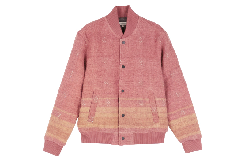The Langza Varsity Jacket Coral from Umber & Ochre is a masterful blend of traditional Indian craftsmanship and modern design. Handwoven from Desi wool and lined with soft cotton, it offers both warmth and comfort. The intricate Tangaliya weaving technique from Gujarat adds a unique, embroidered-like texture to the fabric. Its relaxed fit, ribbed details, and snap front closure make it a versatile piece for various occasions. This jacket is a testament to sustainable fashion and artisanal excellence. Click here to purchase.